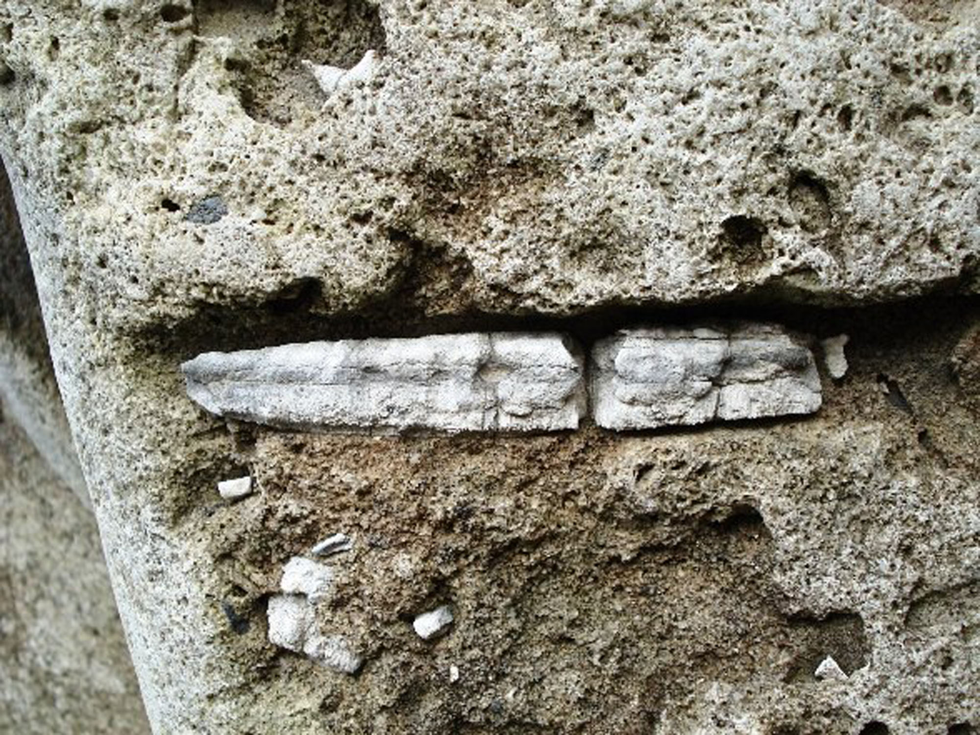 Volcanic rocks that can confuse the eye. The top is a rock with fossils in