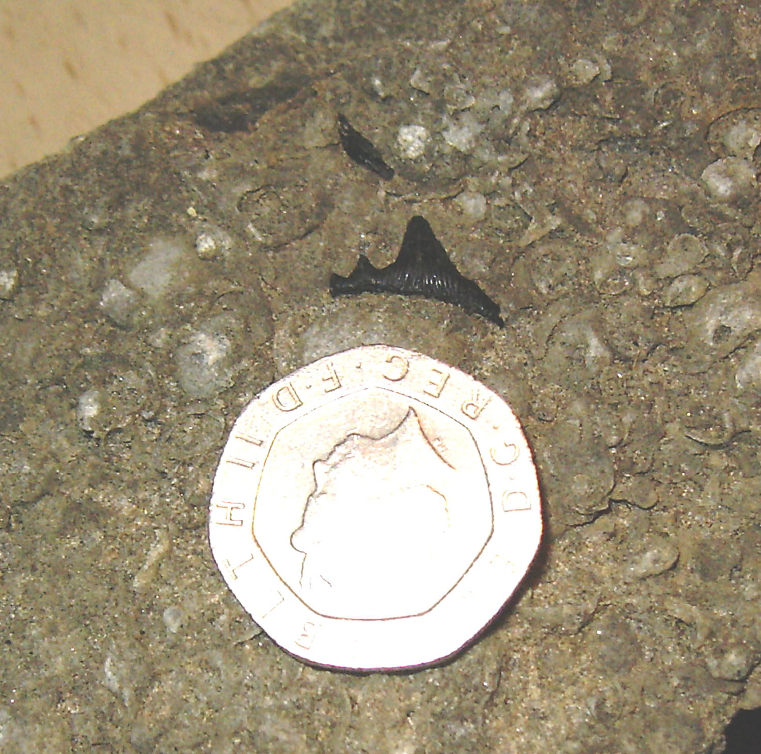 Sharks tooth and fractured rib above