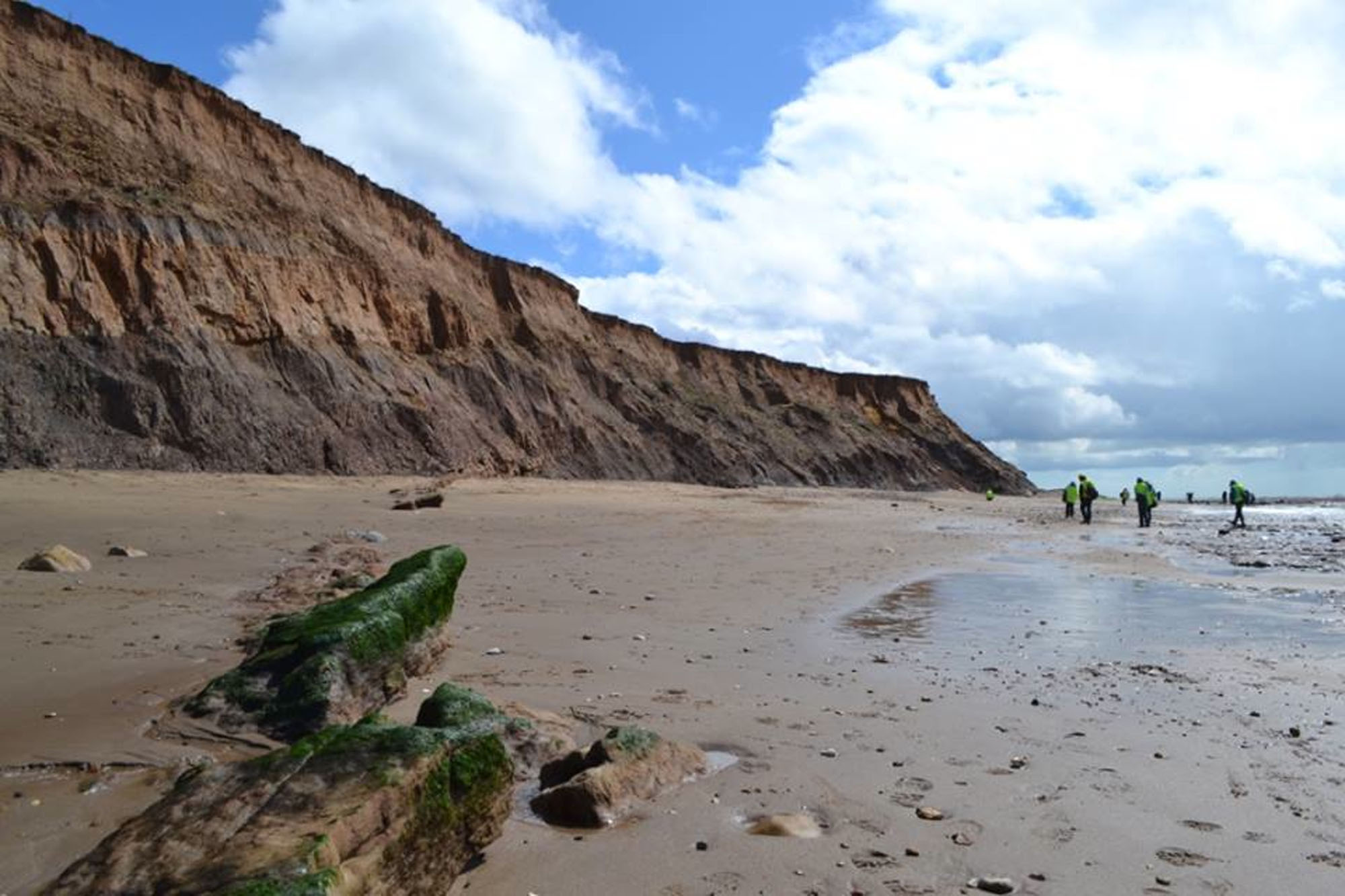 The purple, blue and pink sediments of the cliffs and foreshore were deposited on an ancient river floodplain around 126 million years ago.