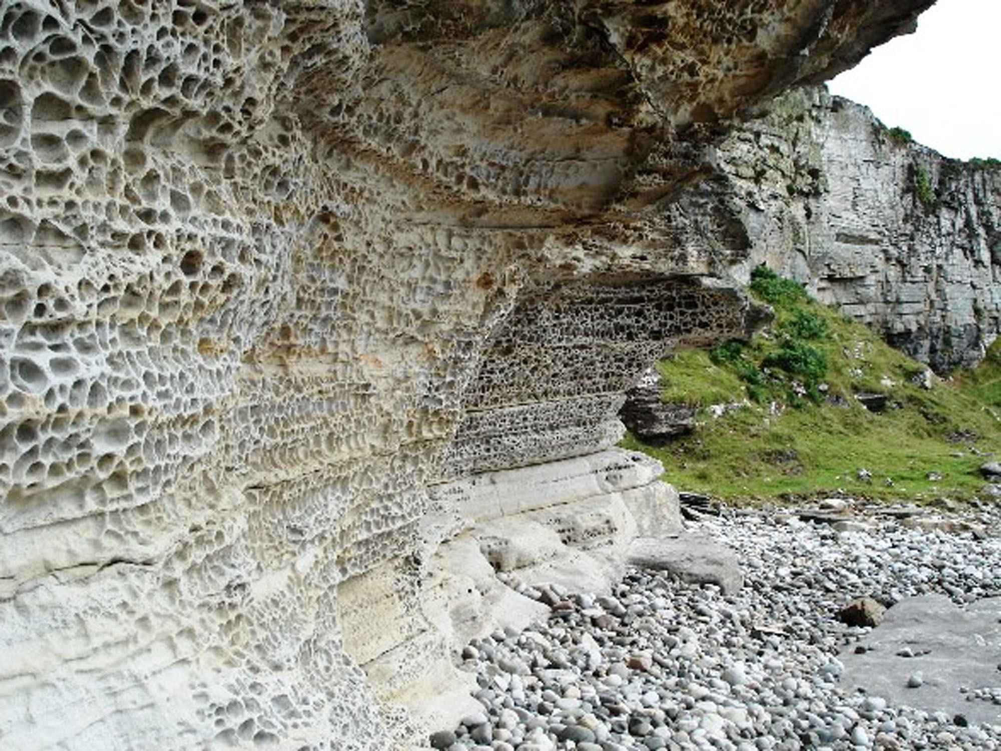 Large blocks and cobbles at the back of the beach in the North part of the bay