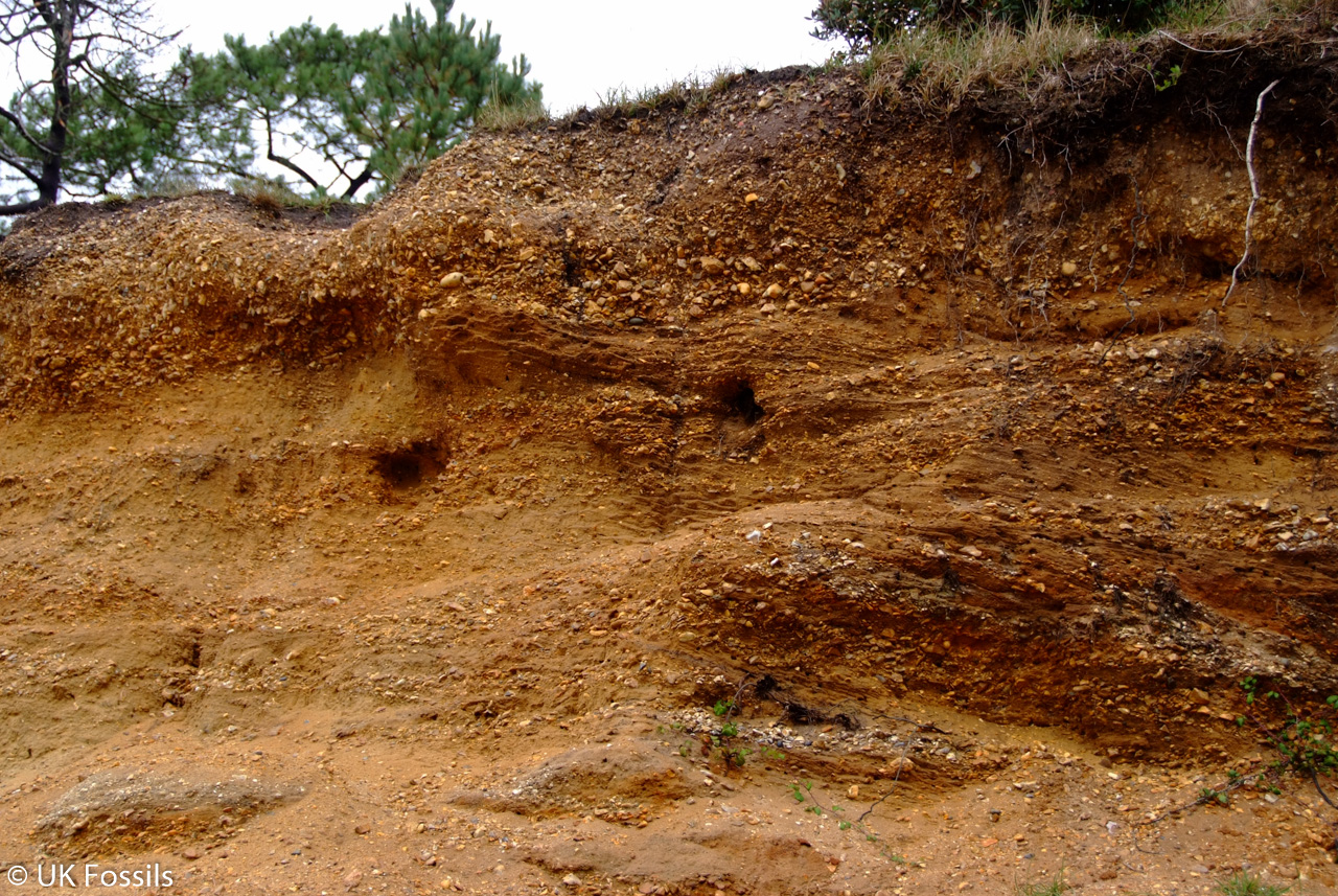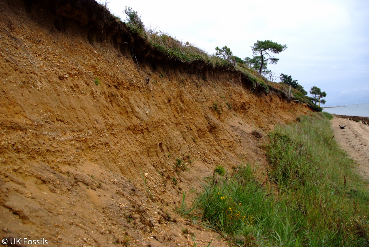 Beneath the Pleistocene gravels are the clays of the Headon Hill Formation (Solent Group), although exposures are small and are not always exposed.