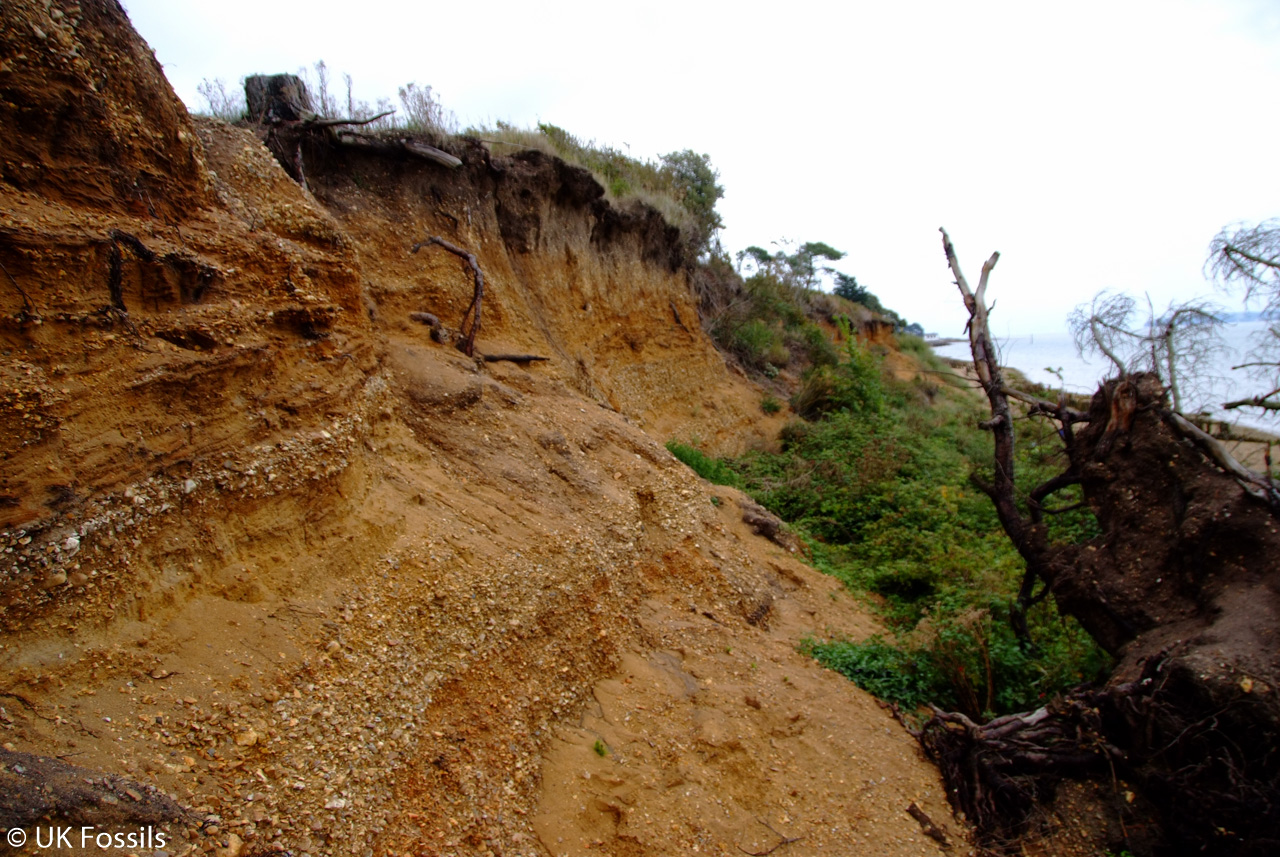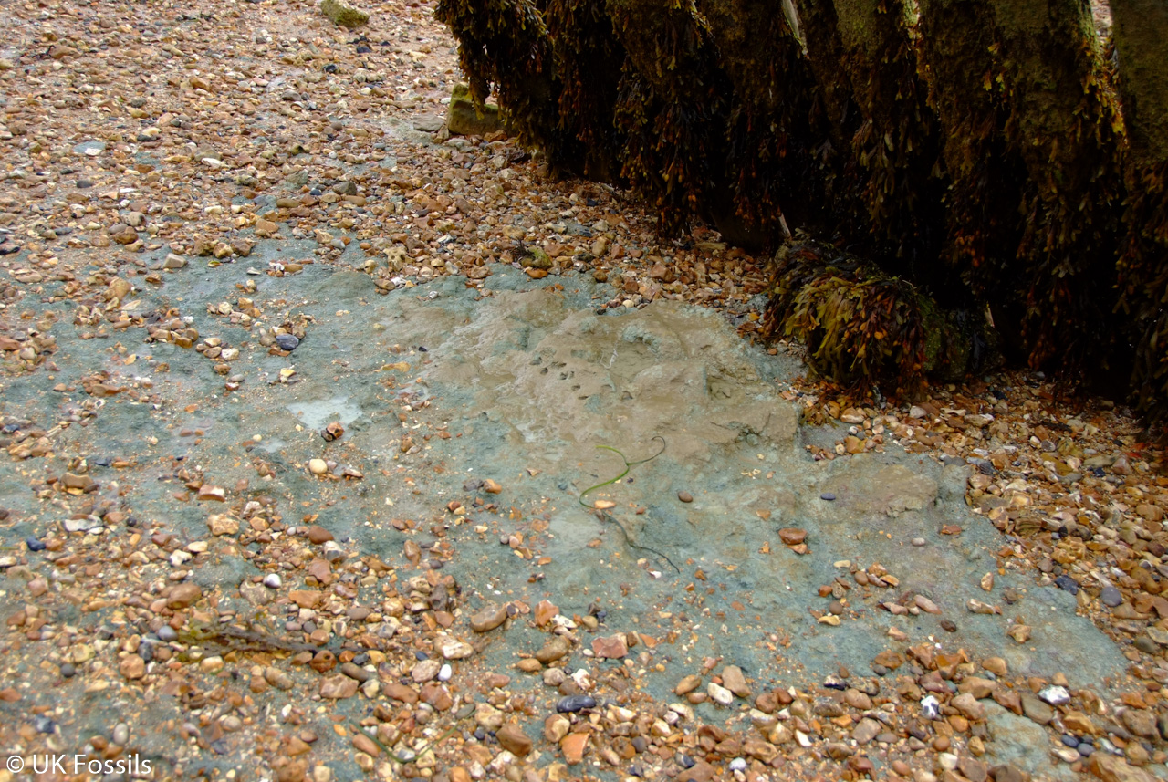FIND FREQUENCY: ♦♦♦ – This is a very good location for Pleistocene remains. Several elephant bones have been found here along with other fossils. Try to visit during the autumn, winter or spring and especially after high tides, as this is when bones can be found, along with fossils from the underlying clay. Walk east for Pleistocene remains and Headon Hill microfossils, and west for the elephant bed.